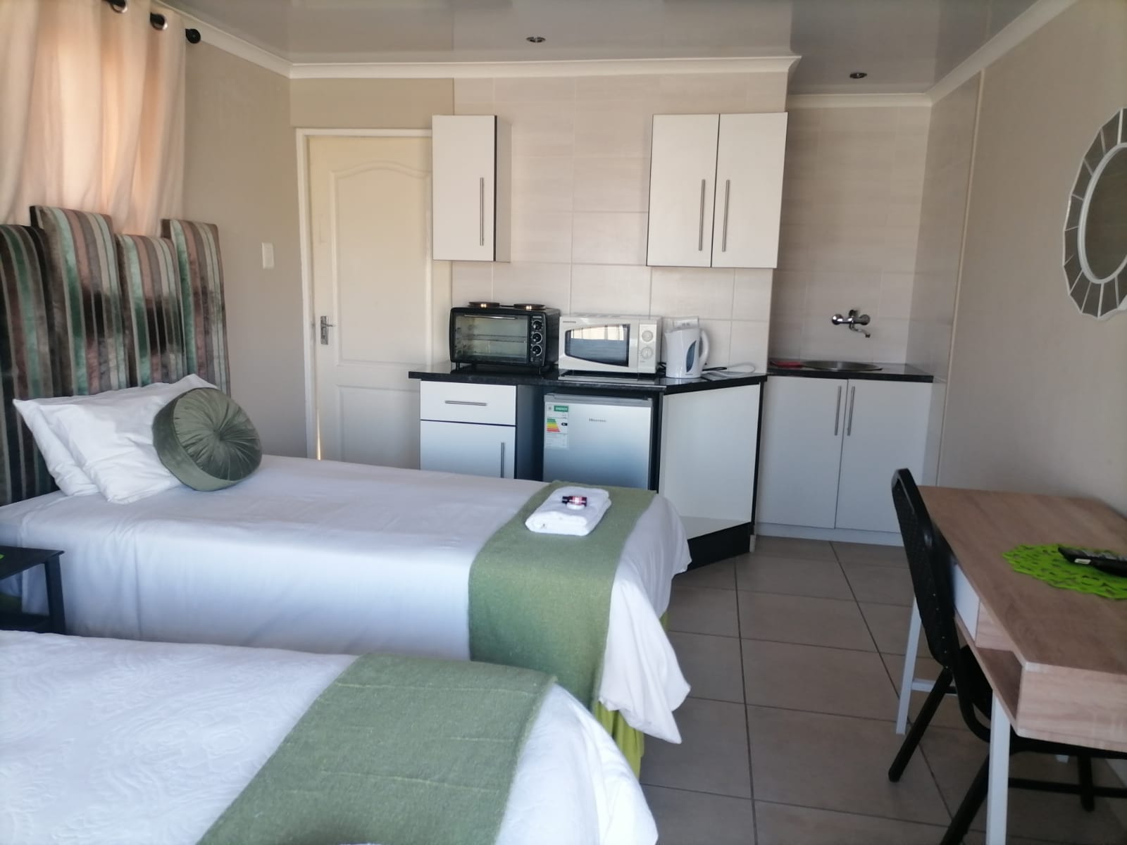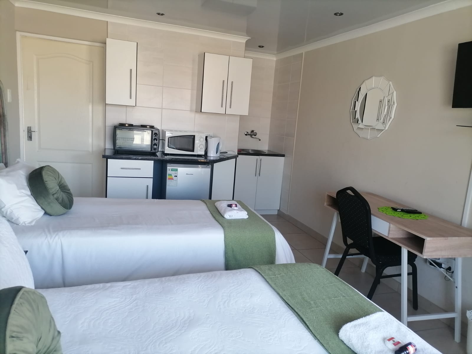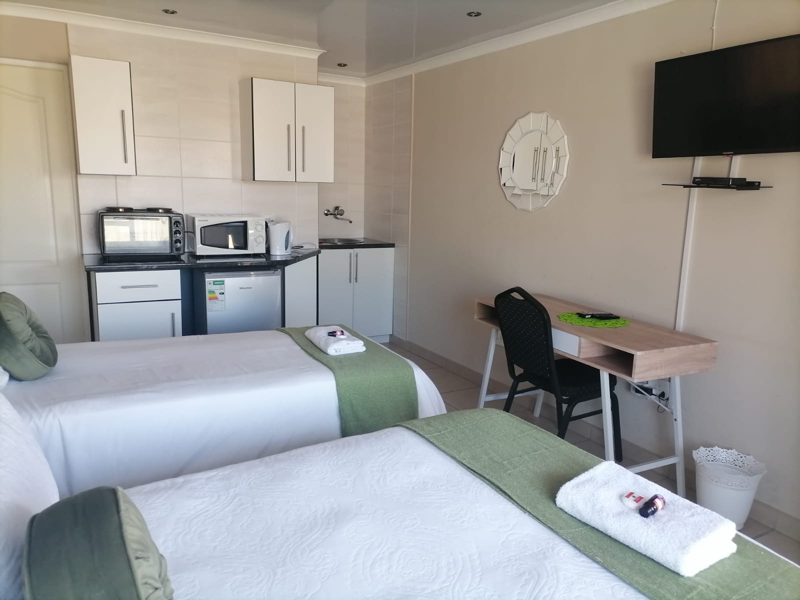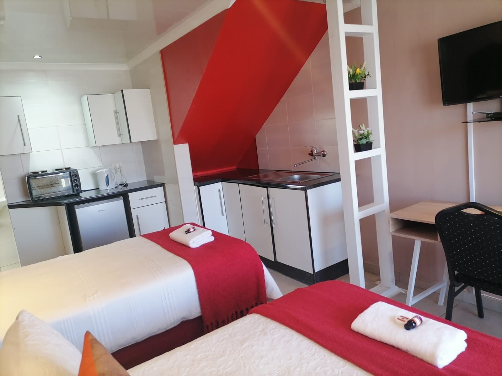 🛏️Queen & Single Bed, 🍳Kitchenette, 📶Wi-Fi, ❄️Air-Conditioner, 🚿Shower, ☕Tea&Coffee, 📺Smart-TV